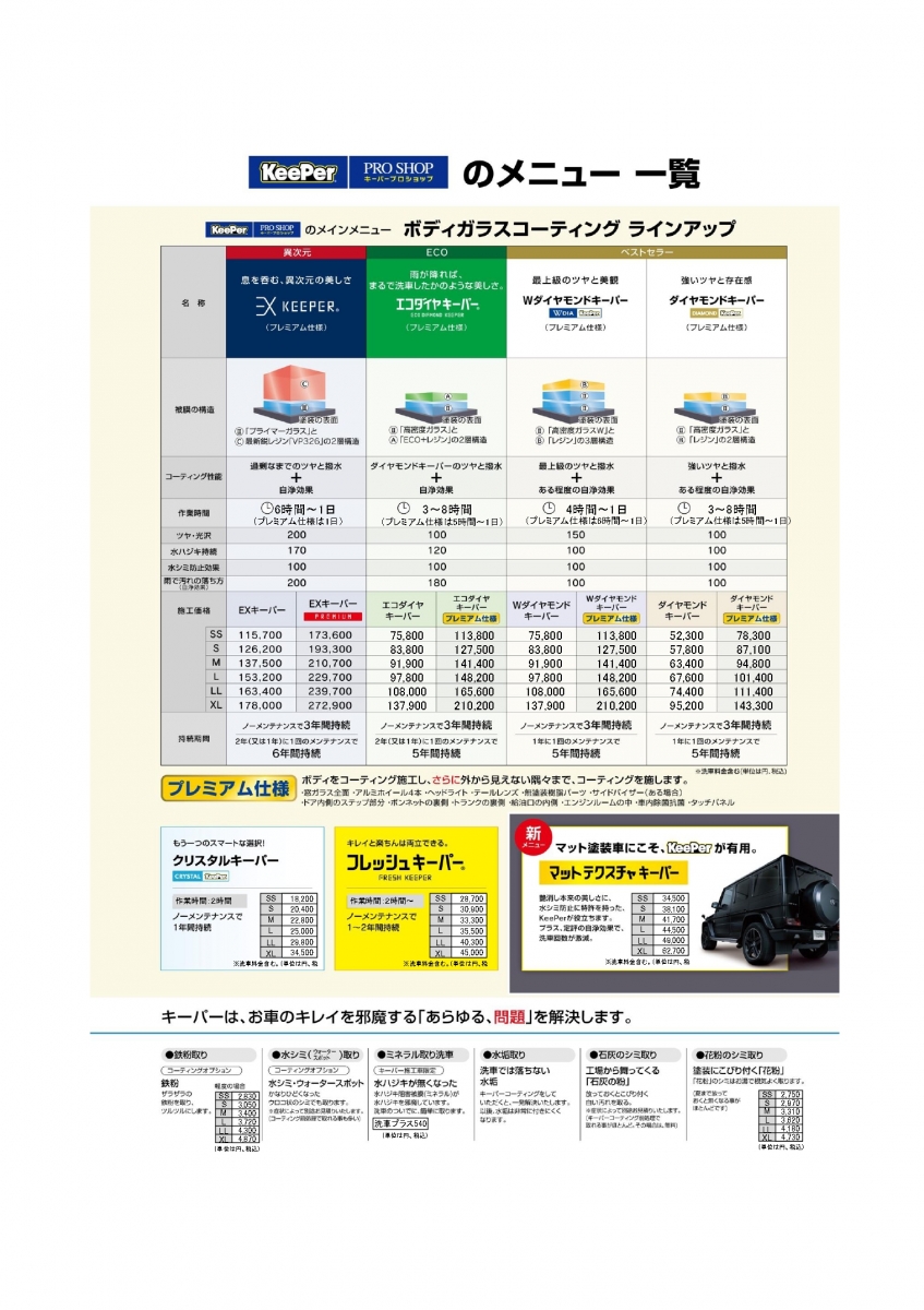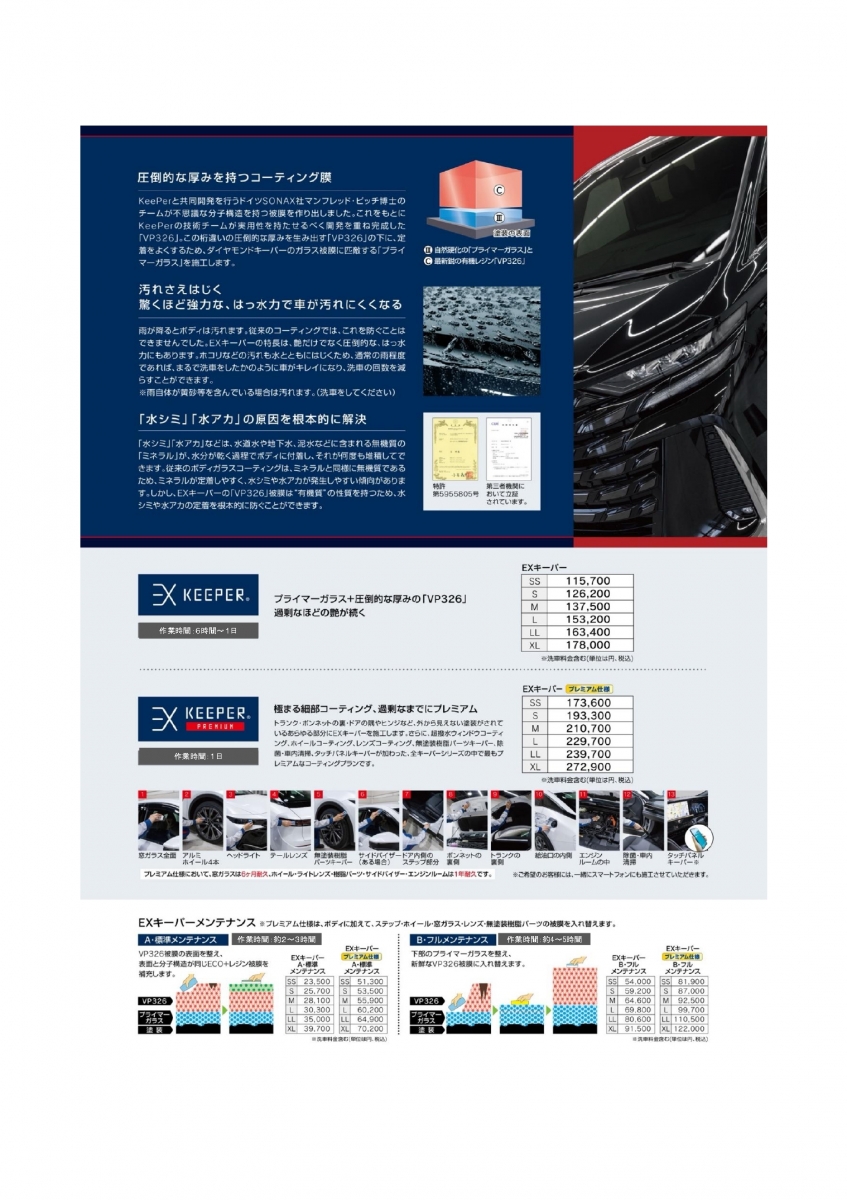 ※EXキーパーは新車用ですが、経年車でもオプションの研磨処理を行う事で施工可能になります(塗装状態によっては施工不可)