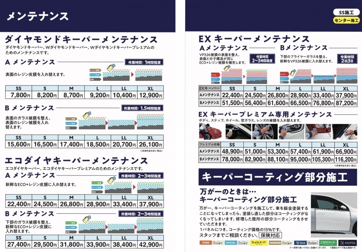コーティングのほか、お車の日常点検・整備も同時施工できますので、