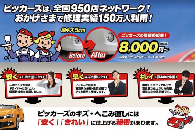 お車の傷やヘコミが気になる方!当店でリペア出来ちゃいます。無料見積もり受付中!画像をクリック!