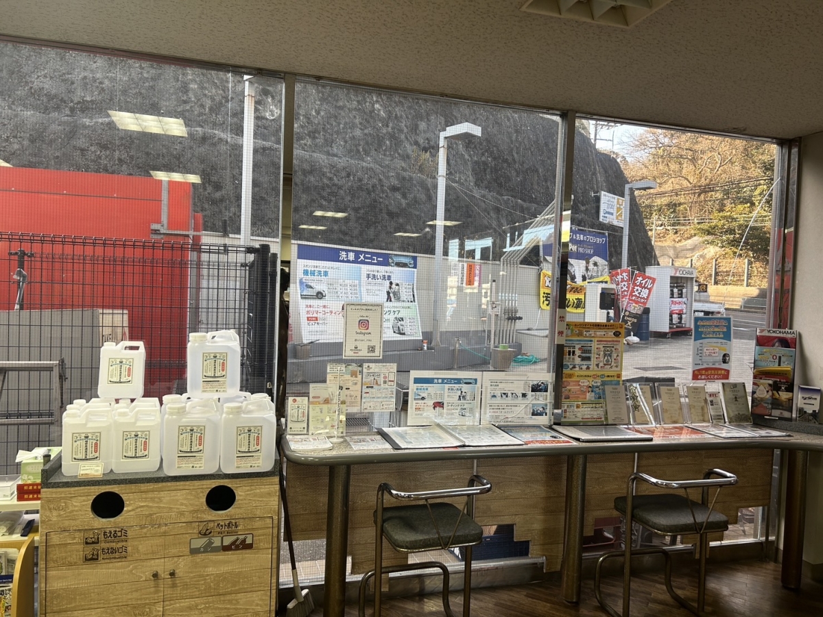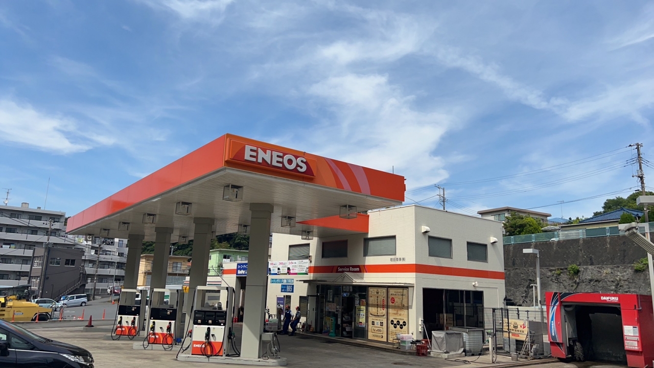井戸店のバス停の近くにあるエネオスマークのフルサービスのガソリンスタンドです。
