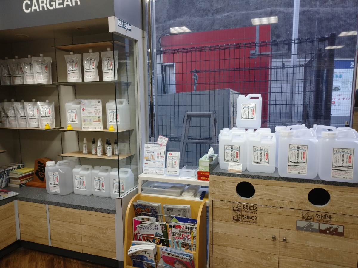 専用容器も売っていますが(4リッター400円・10リッター700円) 容器はなんでもOKです。