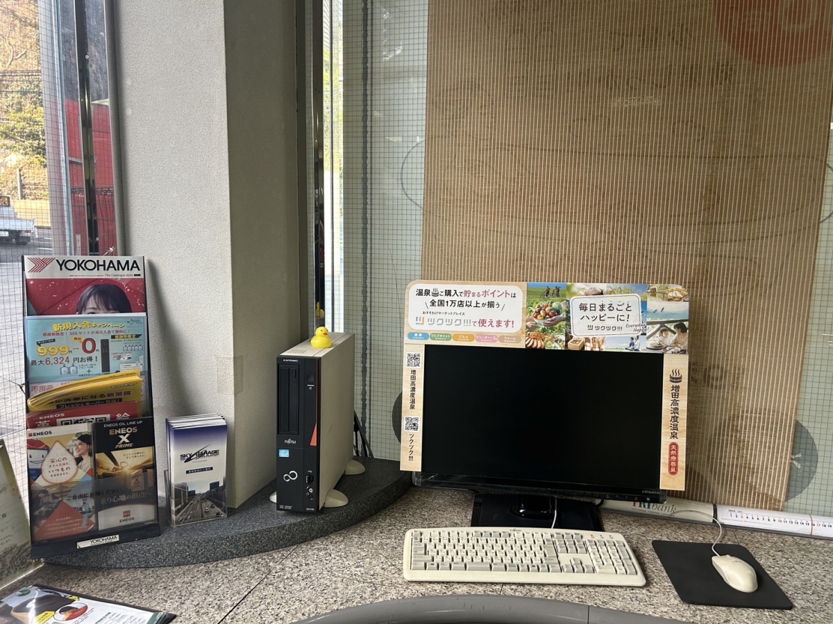 無料で使えるパソコンもご用意しております。大画面でインターネットも楽しめます。