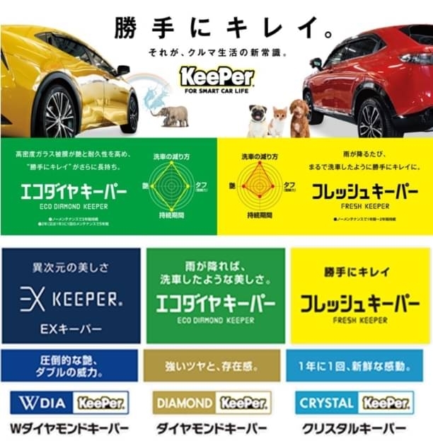 是非とも、一度ダイヤモンドキーパーまたはクリスタルキーパーを施工する事により、多層の汚れ、コーティング層をキレイさっぱり除去し、ガラス質の透明感あるツヤ、汚れにくいレジン被膜を乗せたキーパーコーティングをおすすめします。