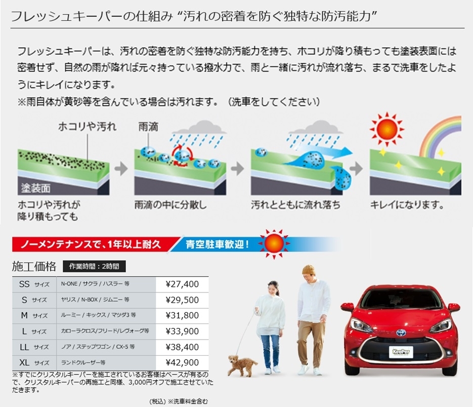 ディーラーコーティング施工車に最適!! 撥水と艶が復活します。