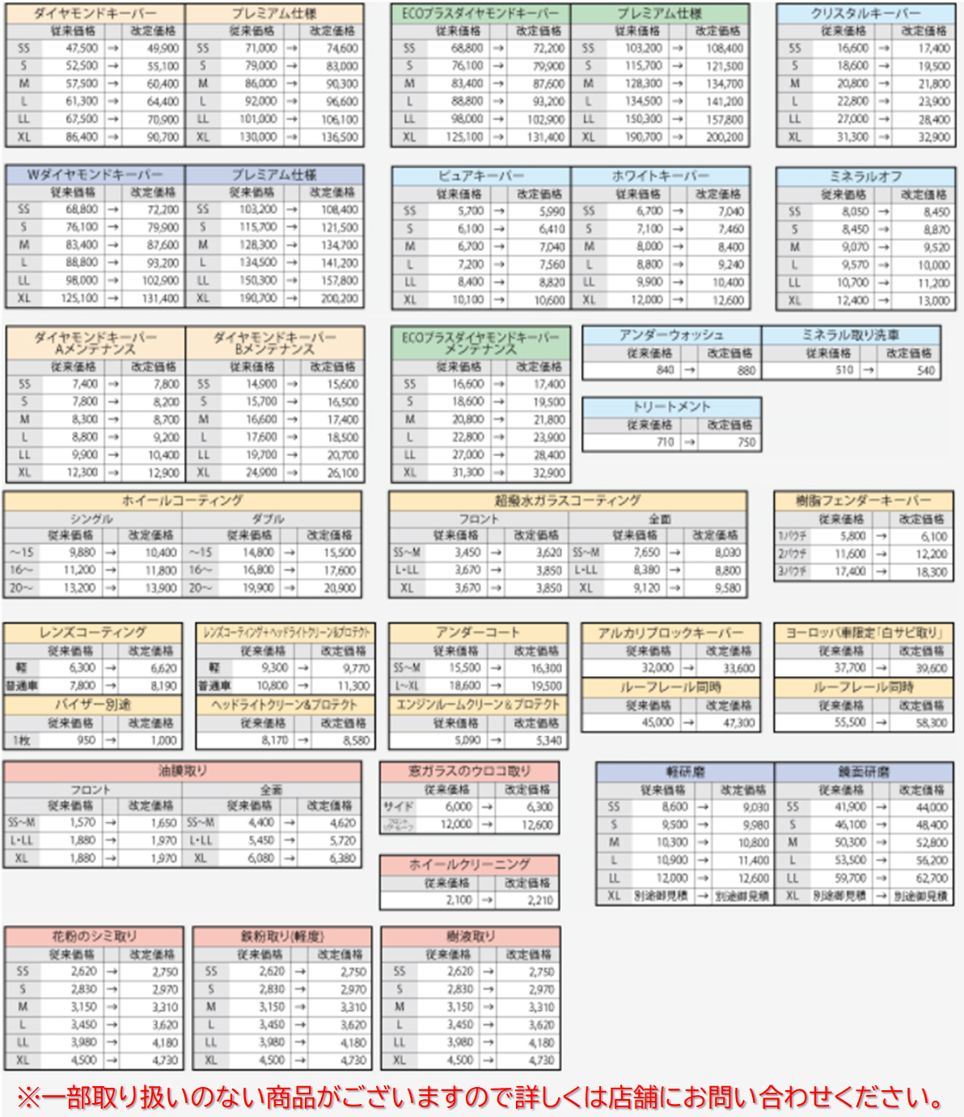 その他、コーティング被膜の定着状態の確認時の洗車サービス、次回施工時の割引なども行っております。