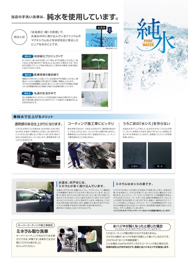 コーティングが既にしてあって水洗い洗車しかできないお車、