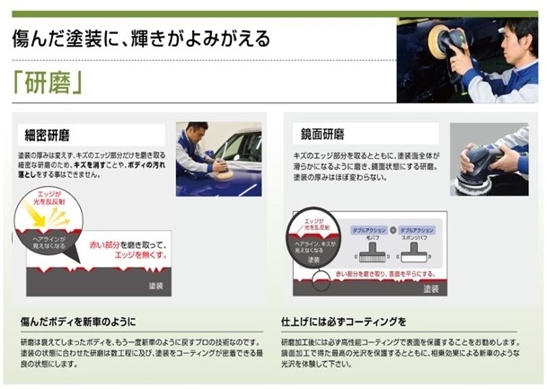 キズのエッジ部分を取ると共に塗装全体を滑らかになるように磨き取る研磨。