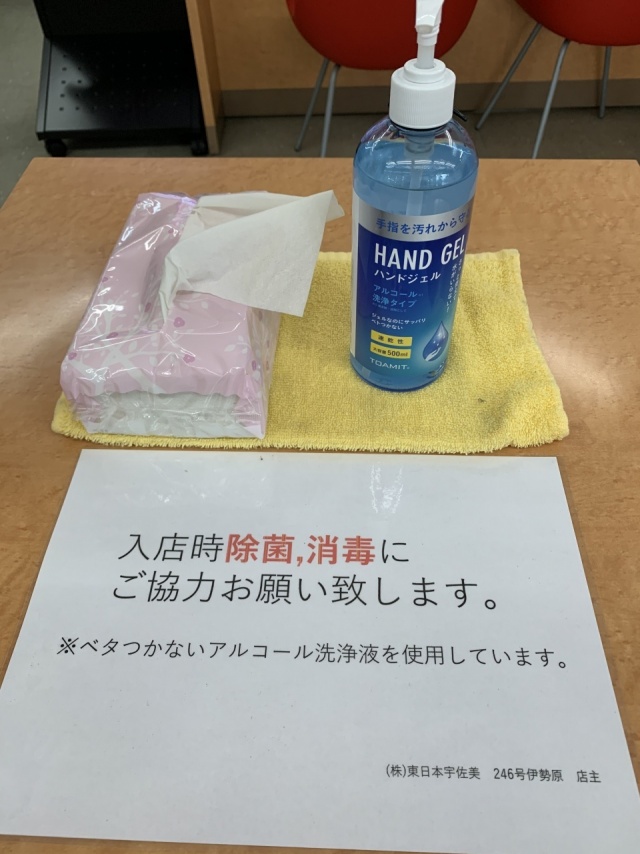 尚、店頭には感染症拡大防止の為、アルコールハンドジェルをご用意しております!店内は定期時間にアルコール消毒をさせて頂いております!