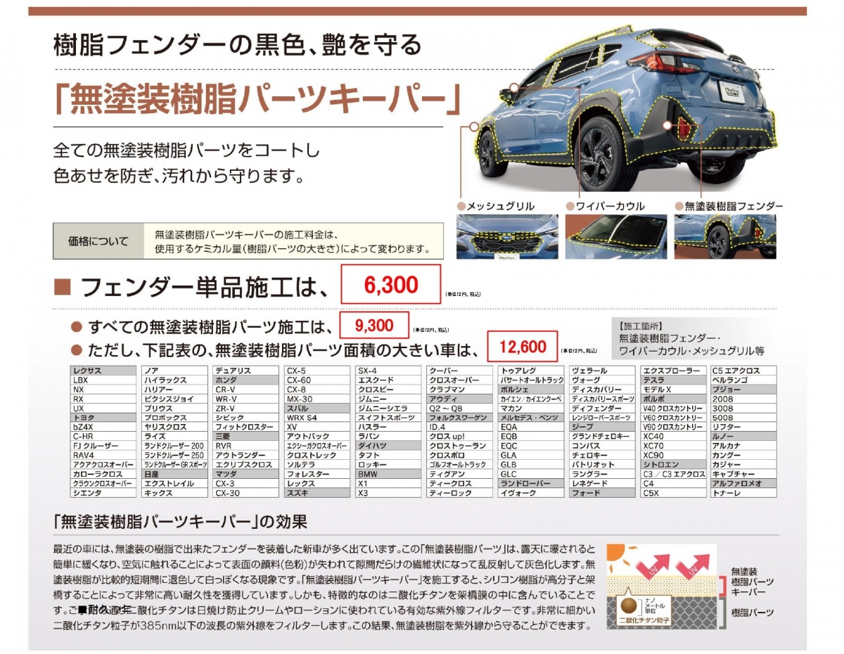 樹脂が白くなってしまうのを防ぐためにも新車時からの施工がおすすめ!