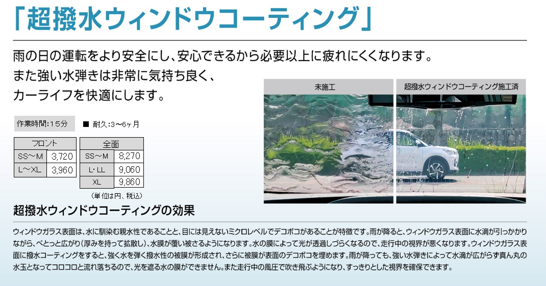 また、当店では施工後のアフターフォローにも力をいれておりますので、施工後の水弾きや汚れ等でお困りの際はぜひ