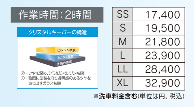 ※効果・持続期間は目安です。あらゆる実車状態・使用状況での効果・持続期間の確認はしておりません。