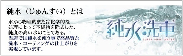 当店の手洗い洗車はすべて''純水’’仕上げの純水手洗い洗車