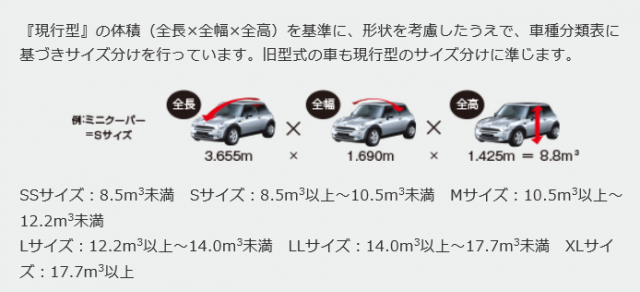 『私の車は何サイズ?』↑↑↑コチラを参考にご覧ください。