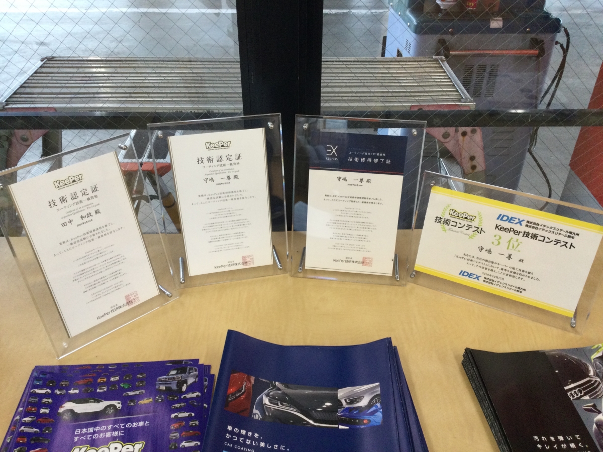 当店自慢のコーティングゾーンには、今まで当店のスタッフが獲得してきた数々の賞の証が並べられております!!