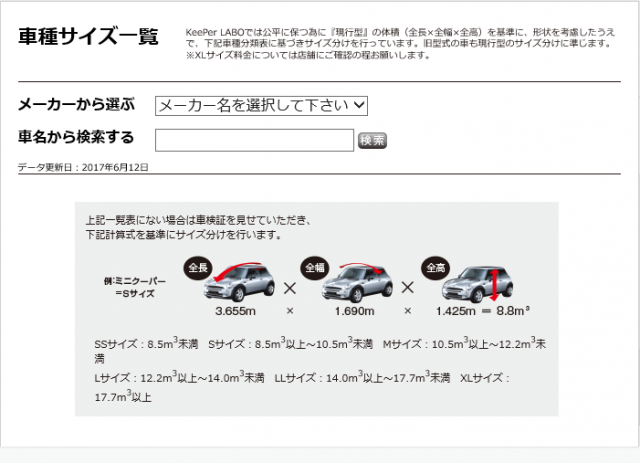 車種サイズ一覧