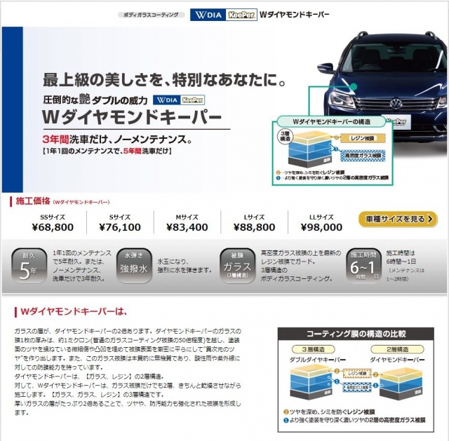 Wダイヤモンドキーパー(3年コーティング:ガラス2枚張り+軽研磨)