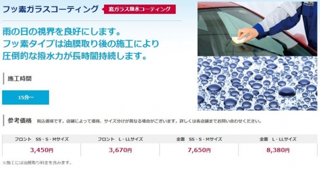 ガラス面のフッ素加工・シリコン加工・油膜取り
