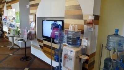 細長くてお洒落な禁煙ルームです(^.^)/~~~テレビの横にあるアクアクララでおいしい水が飲み放題です!!