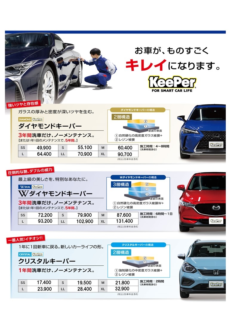 またコーティング施行当日、代車も空き次第でご準備させて頂きます。