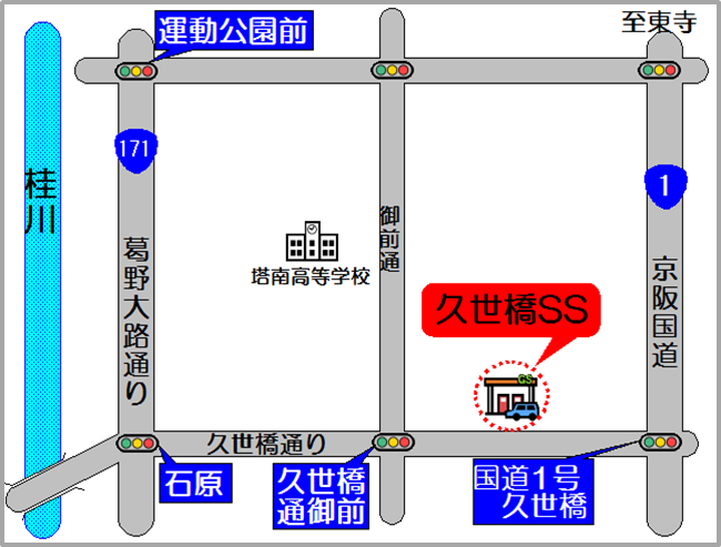 当店は京都南インターより約10分、久世橋通沿いにございます