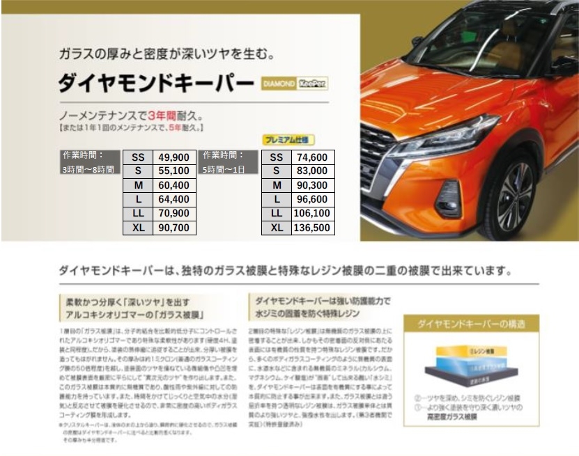 新車、車検時にオススメ!【ダイヤモンドキーパー】