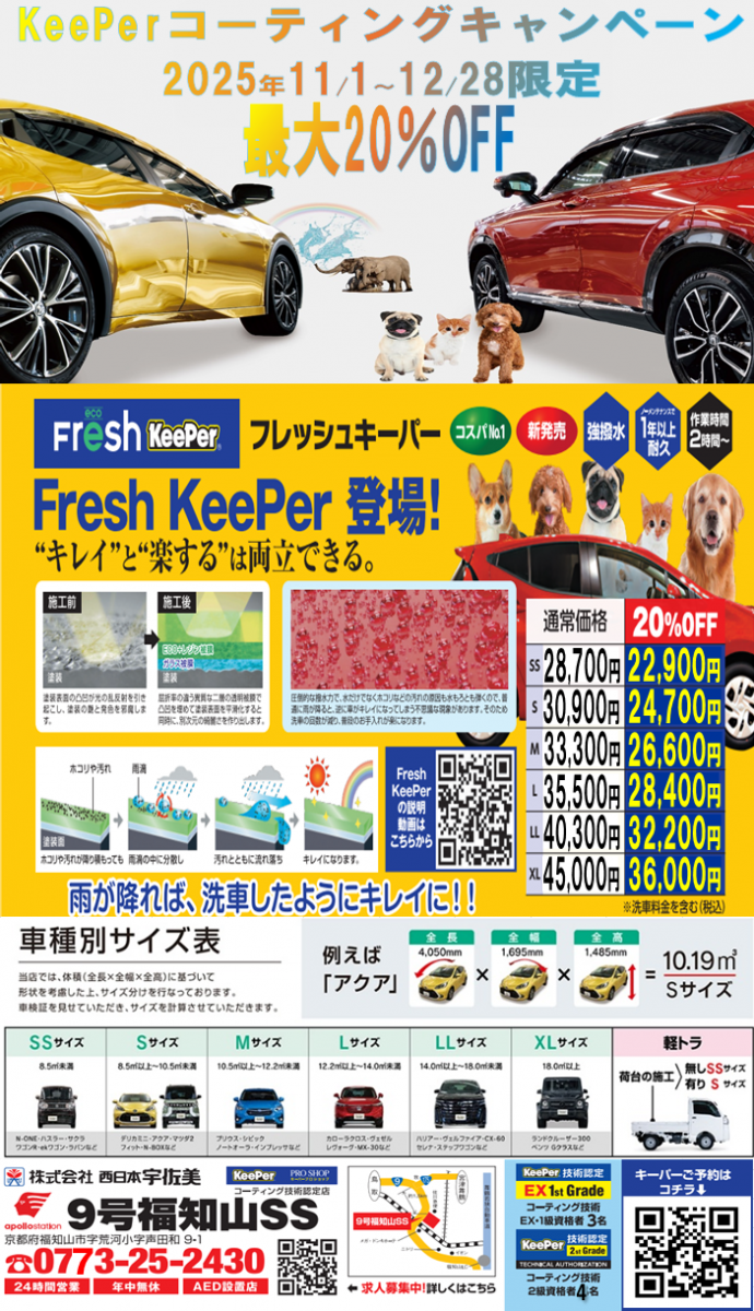 キーパープロショップ 宇佐美9号福知山SSをご覧頂きありがとうございます! カーコーティングや洗車、車のキレイに関する事はお気軽にご相談ください!