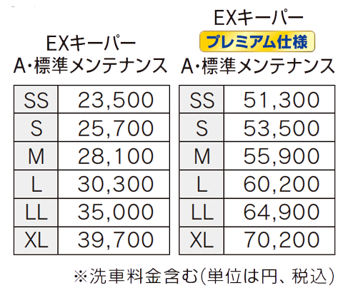 キーパープロショップでは、お車の大きさに応じて施工料金が変わります。