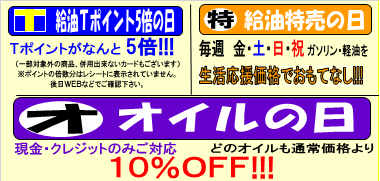 一年間毎月燃料割引10円引き/Lクーポンプレゼント!