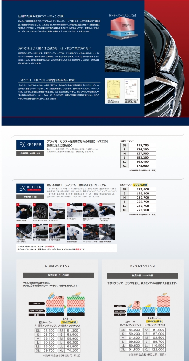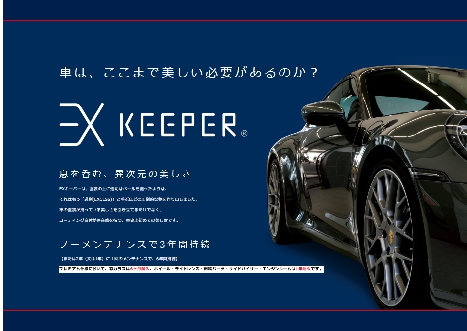 新車専用のコーティング【EXキーパー】の取扱いをはじめました。
