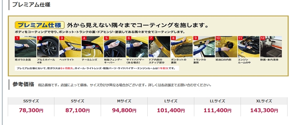 手洗い洗車 プレミアム洗車 室内清掃 ポリマーコーティング ガラスコーティング ホイルコーティング 窓ガラスのコーティング フッ素 シリコン アンダーコーティング ヘッドライトコーティング