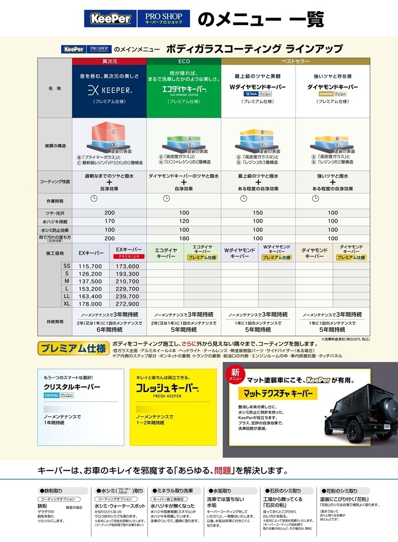 キーパープロショップでは、そんな多様なニーズに応えるために豊富なメニューを用意しています。