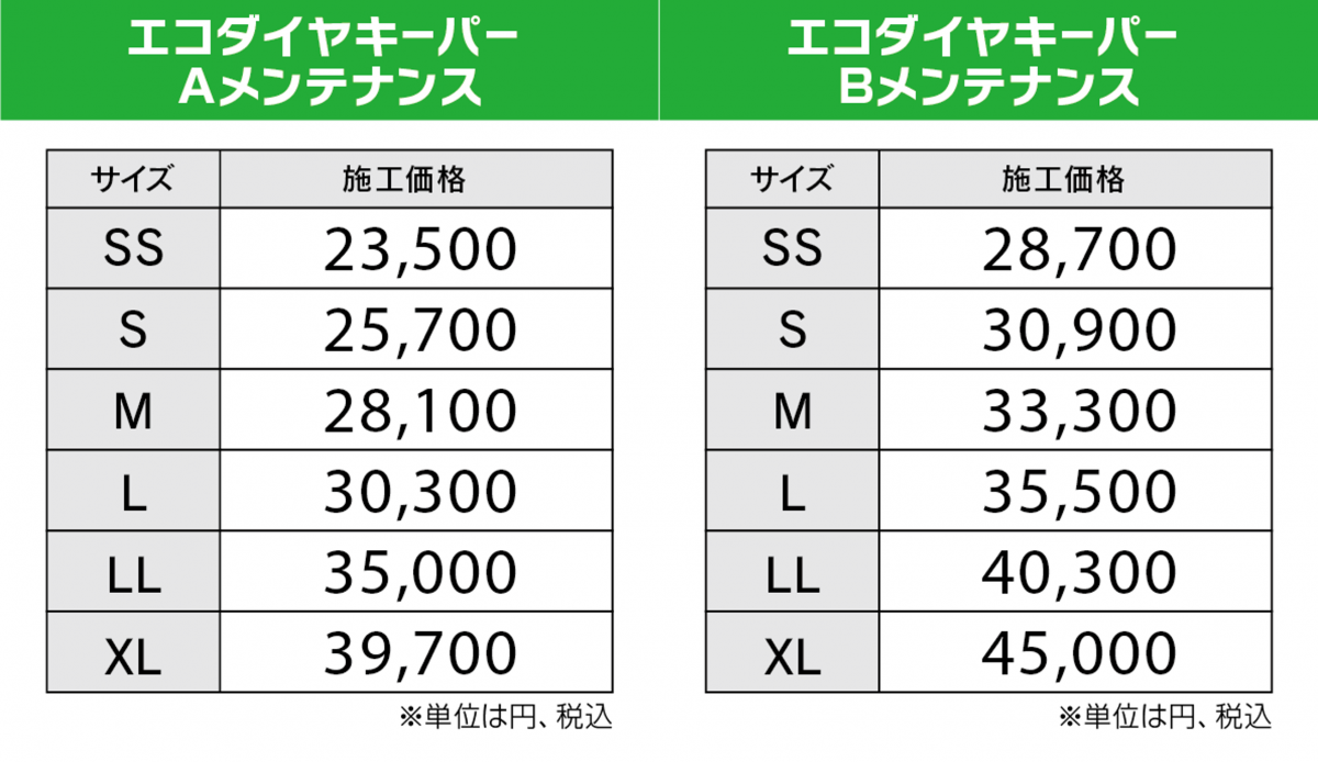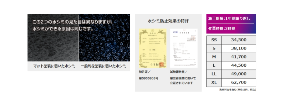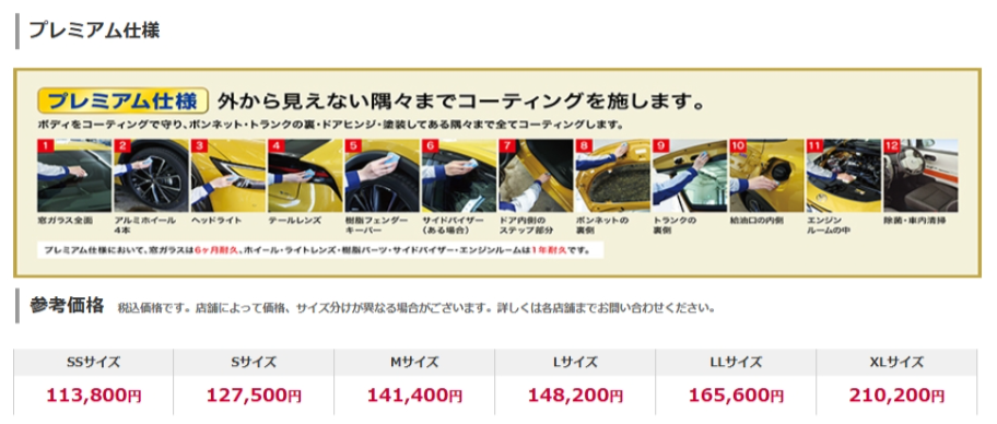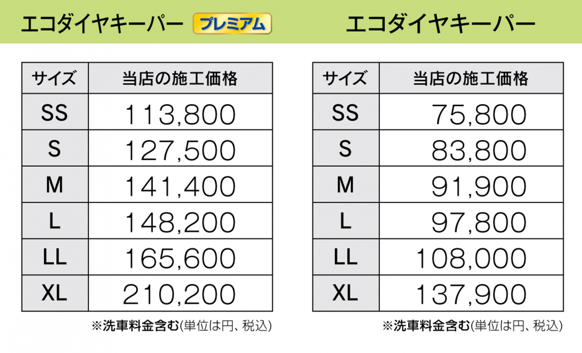 お車の大きさに応じて施工料金が変わります。