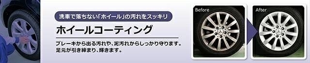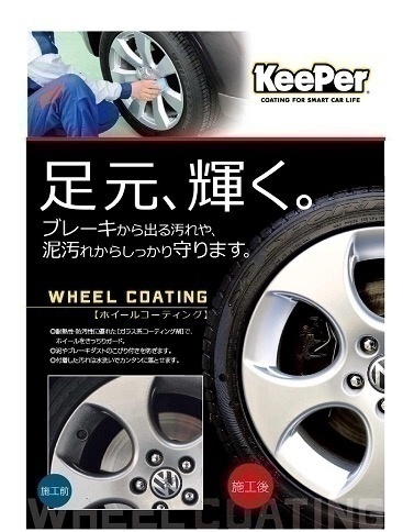 キレイは足元から♪コーティングをするとブレーキダストや泥汚れからしっかり守って、汚れが付着しにくくなります。 当店のダイヤモンドキーパーやクリスタルキーパーに使用しているのと同じガラス系のコーティング剤を使用するので耐久性もバツグンです。 特に輸入車にお乗りの方へオススメです。 ホイールコーティング2?? 施工時間 約50分? 〜15インチまで¥10700 16〜19インチ? 12100 20インチ〜?14300 Wホイールコーティング2?? 施行時間 約2時間? ?15インチまで¥15900 16?19インチ¥18100 20インチ?¥21500 ※ホイールを取り外しての作業は事故防止の為に行っておりません。ご了承下さい。