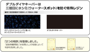 ● ガラス被膜とレジン被膜の2層構造で、水シミ雨シミを防止。
