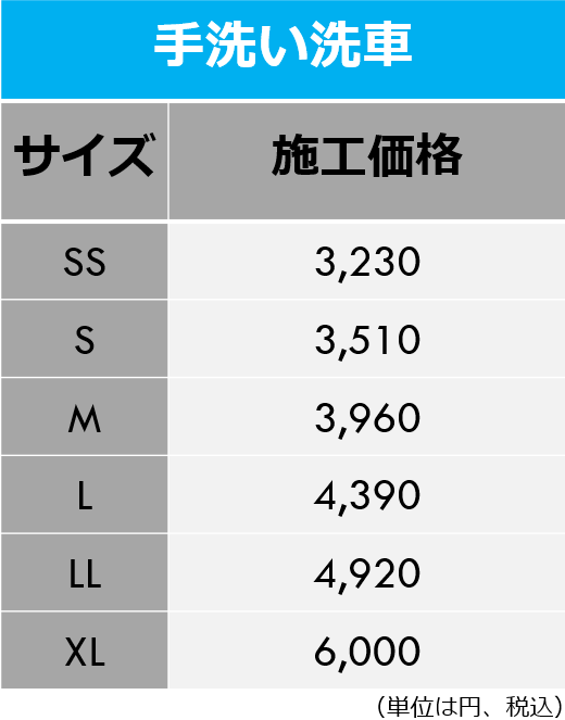 お車のサイズによって値段も変わってきますので是非一度スタッフにご相談ください。