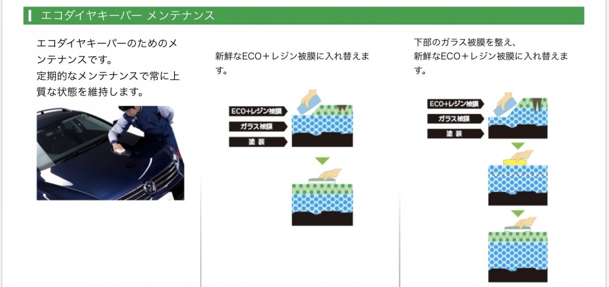 下地のガラス被膜を整え、その上から新鮮なレジン被膜を塗装するBメンテナンスがあります。