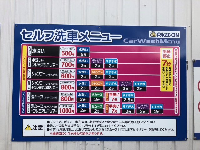 ☆☆☆ セルフ洗車メニュー ☆☆☆