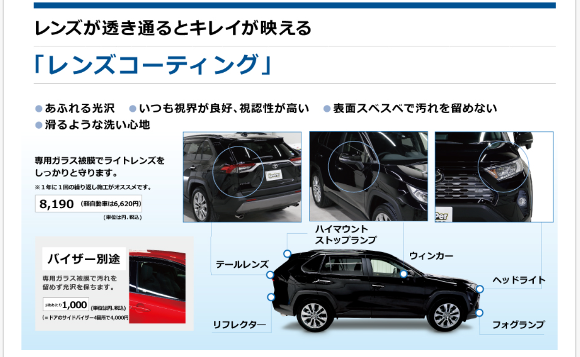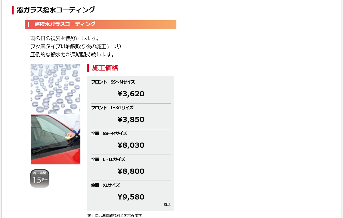■クリスタルキーパー以上のコーティング施工のお客様は、フロントガラスのフッ素ガラスコーティングのサービス付きです。