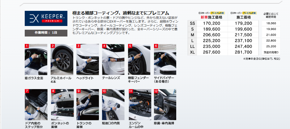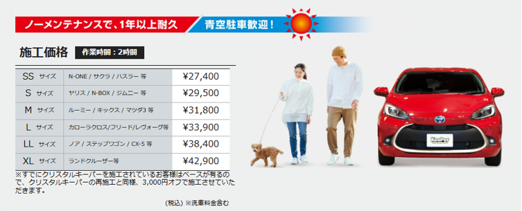 【品質重視のため原則クリスタルキーパー以上の施工は1日1台としています】