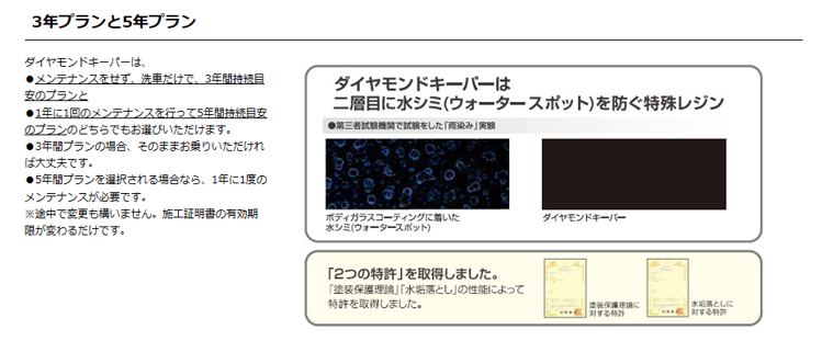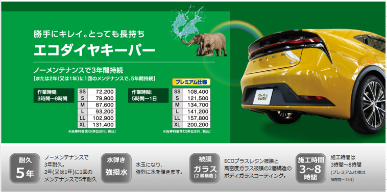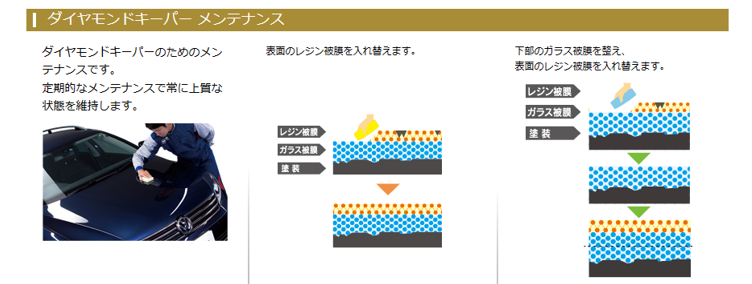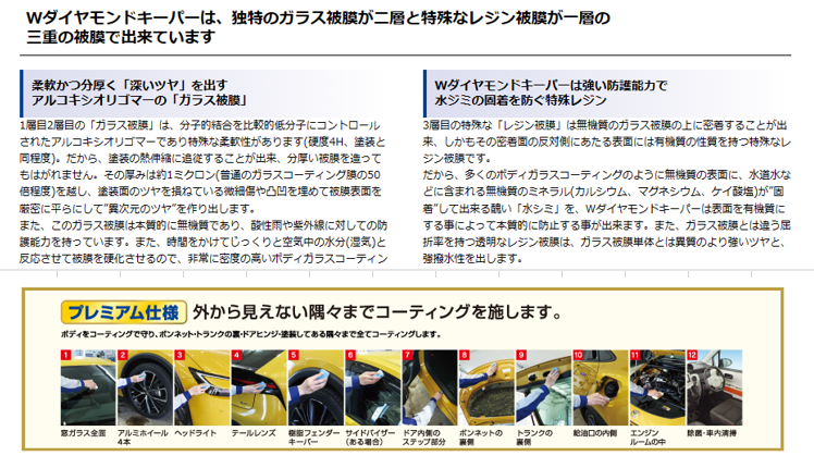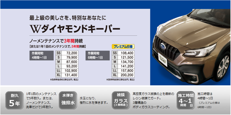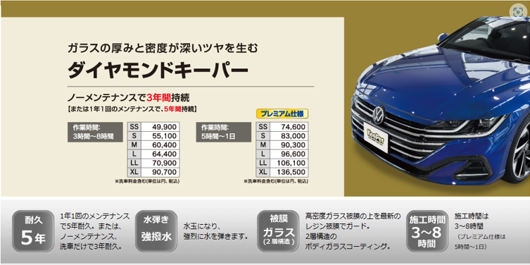 当店イチオシ!3年~5年耐久のダイヤモンドキーパー。高密度のガラス被膜により、クリスタルキーパー、フレッシュキーパーよりも、深いツヤと輝きをお約束します。