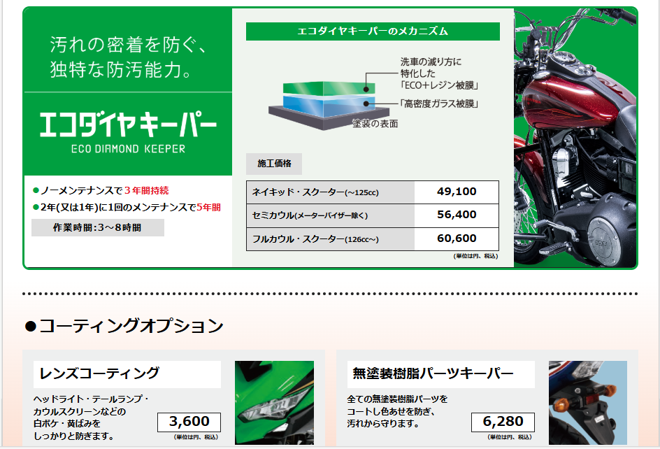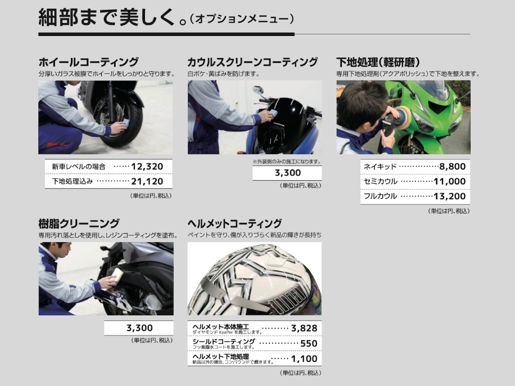 ※バイクのコーティング施工も承っています。詳細はホームページ下部をご覧ください。