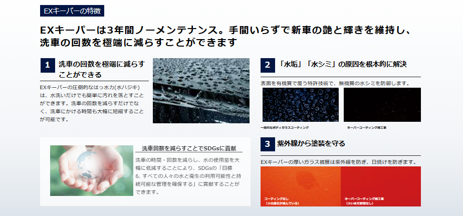 撥水力と汚れの付きにくさはEXキーパーとほぼ同等の実力です。