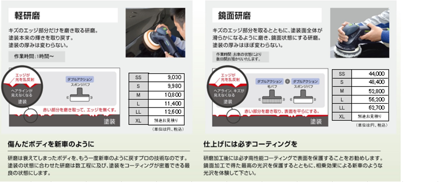 ※プレミアム施工及び研磨をプラスの場合は1.5~2日お預かりします。
