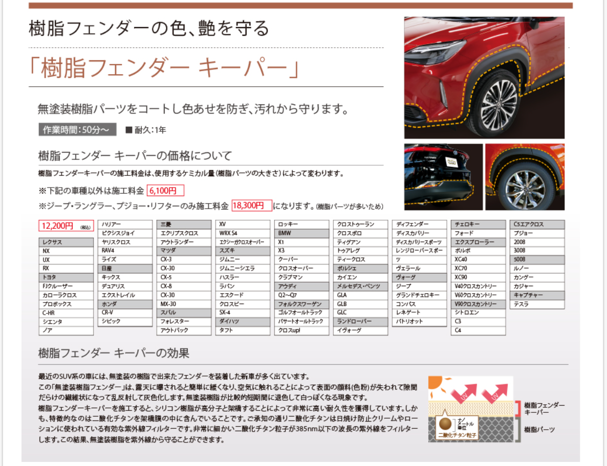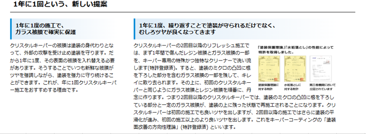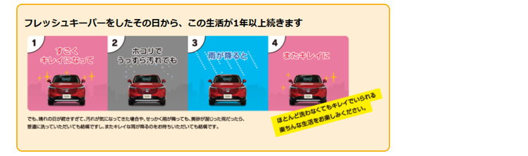 (当店では、お車のキレイと撥水効果維持のため1年毎のメンテナンスを推奨しています)