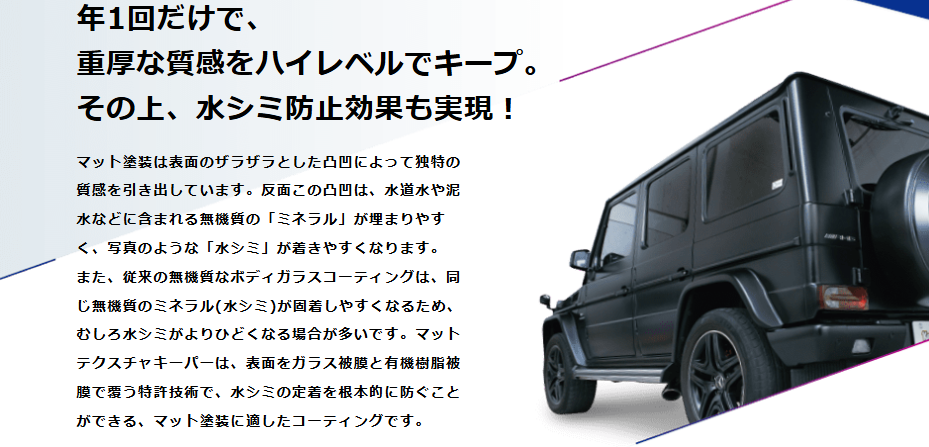 マット塗装車のコーティングもお任せください。高い質感をお約束します。