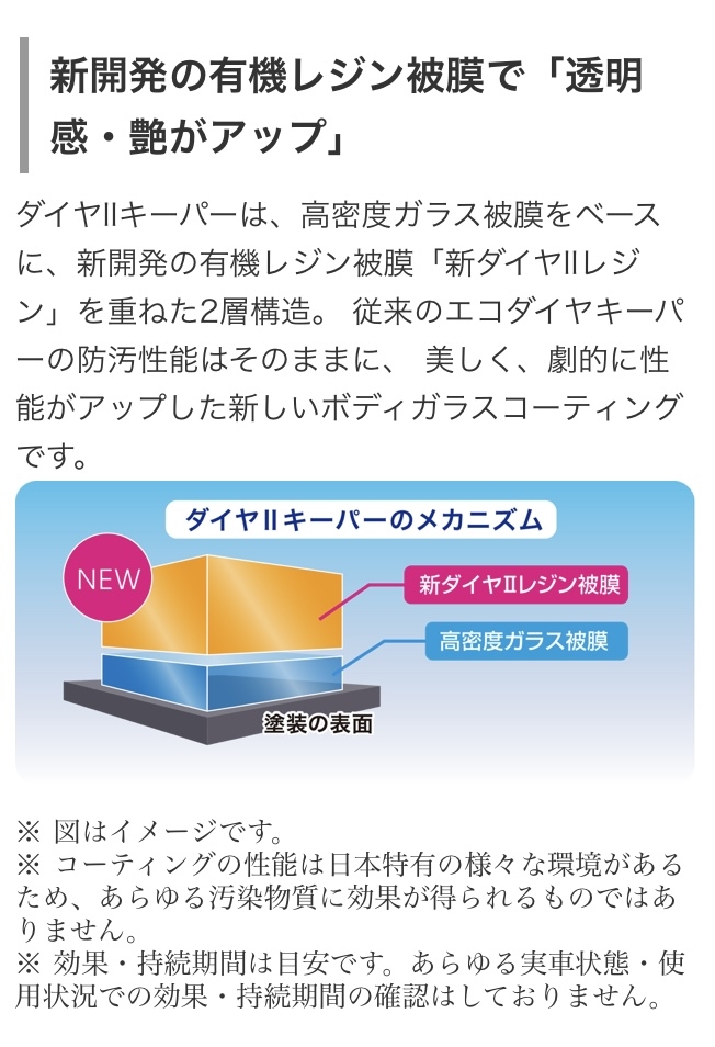 2層コーティング、分厚い膜で車の塗装を5年守ります。