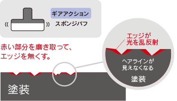 キズのエッジ部分だけを磨き取る研磨。 塗装本来の輝きを取り戻し、塗装の厚みは変わりません。