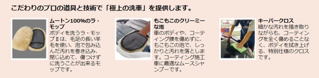 ケミカルと技術は「塗装を絶対に傷めない」というポリシーを強く持っています。そのため、塗装を傷めるトルエン、キシレンなどの有機溶剤は一切含まれておりません。施工においても万全を期しております。