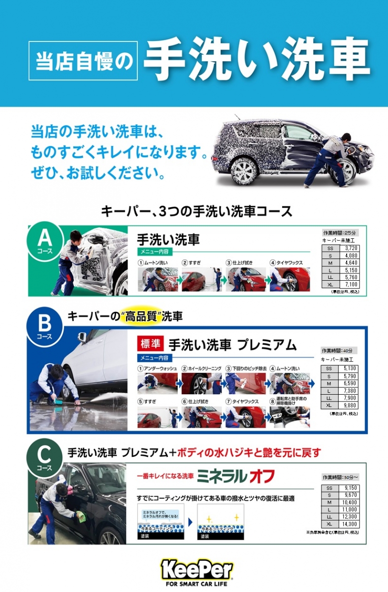 - 年中無休 ※手洗い洗車・コーティングは水曜日がお休みです。