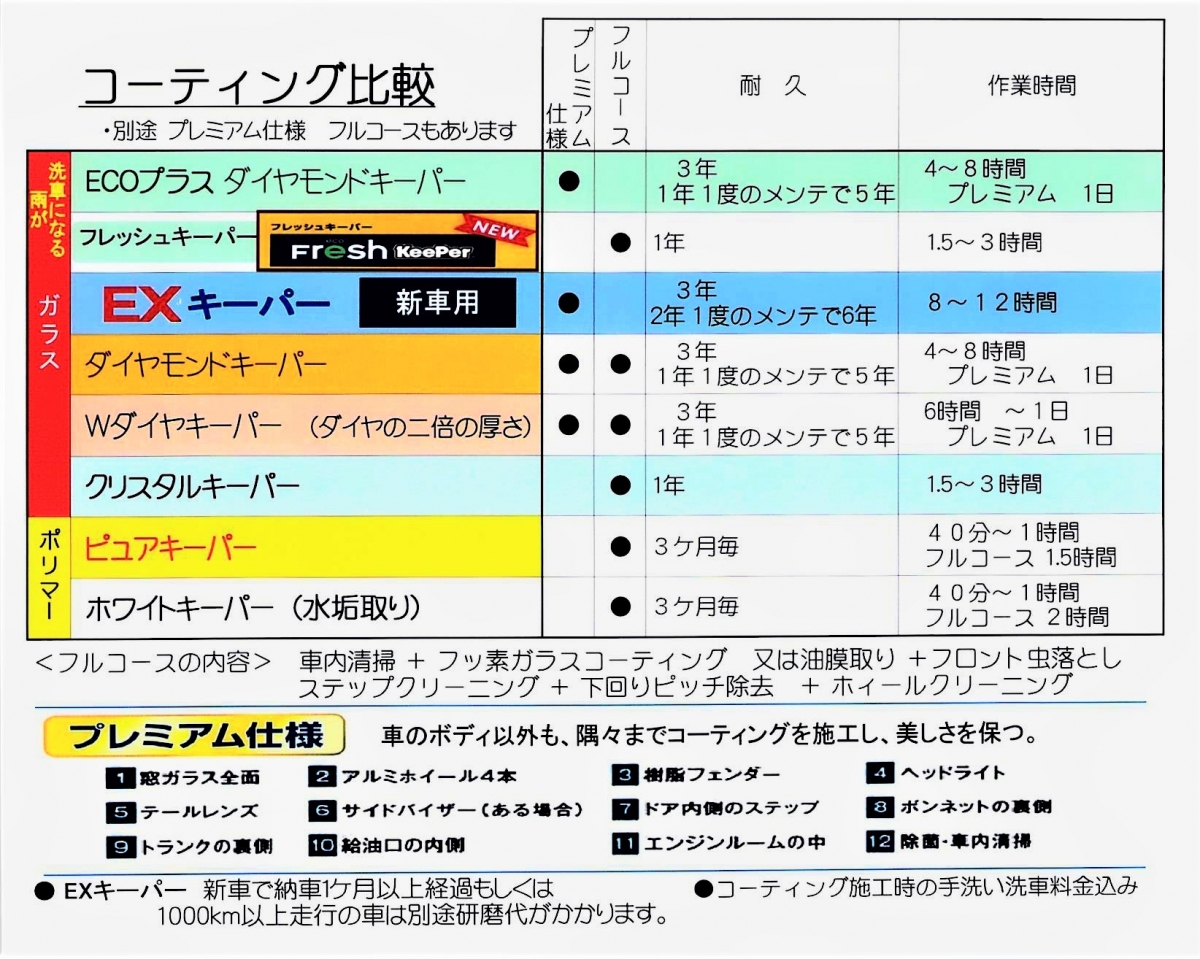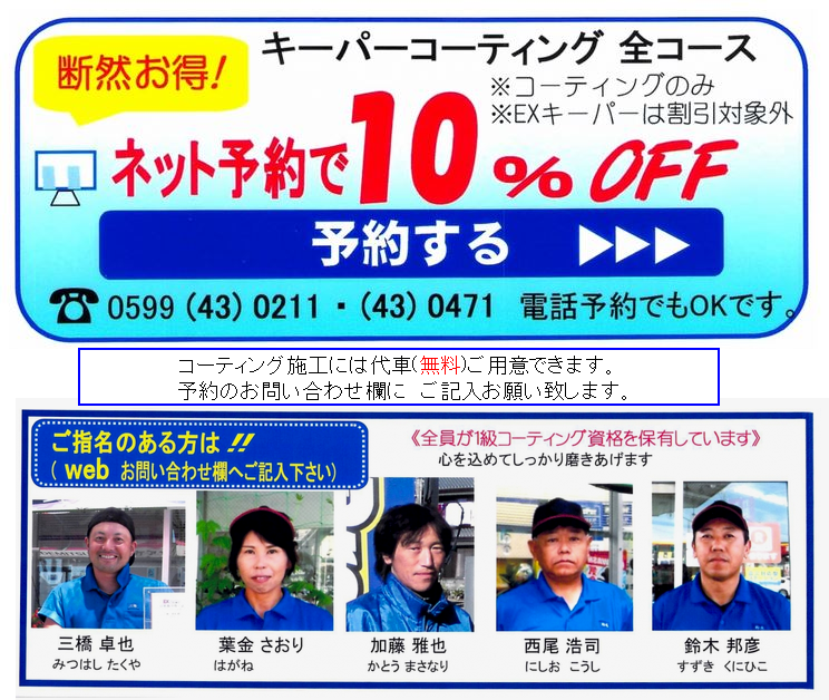 全員がKeePerコーティング施工1級資格と新車用コーティングEXキーパー1級資格を三橋、加藤は取得しています。
